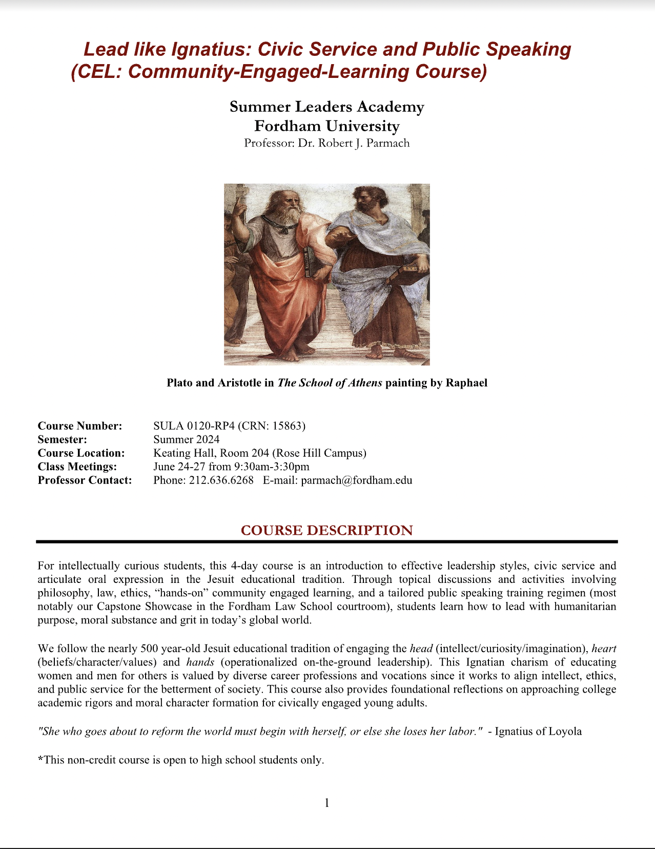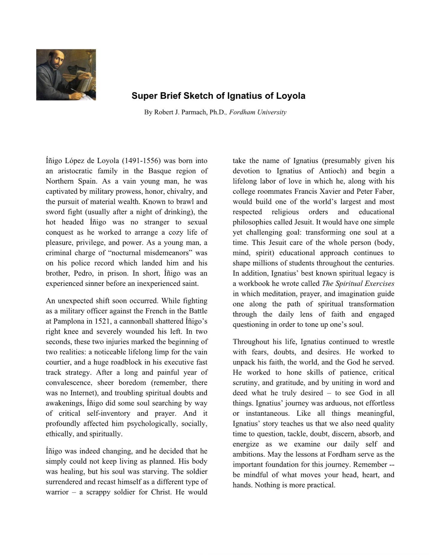 Description: This session introduces key themes in the life and work of St. Ignatius Loyola, founder of the Jesuits, and the fundamentals of the Jesuit educational experience at Fordham University.