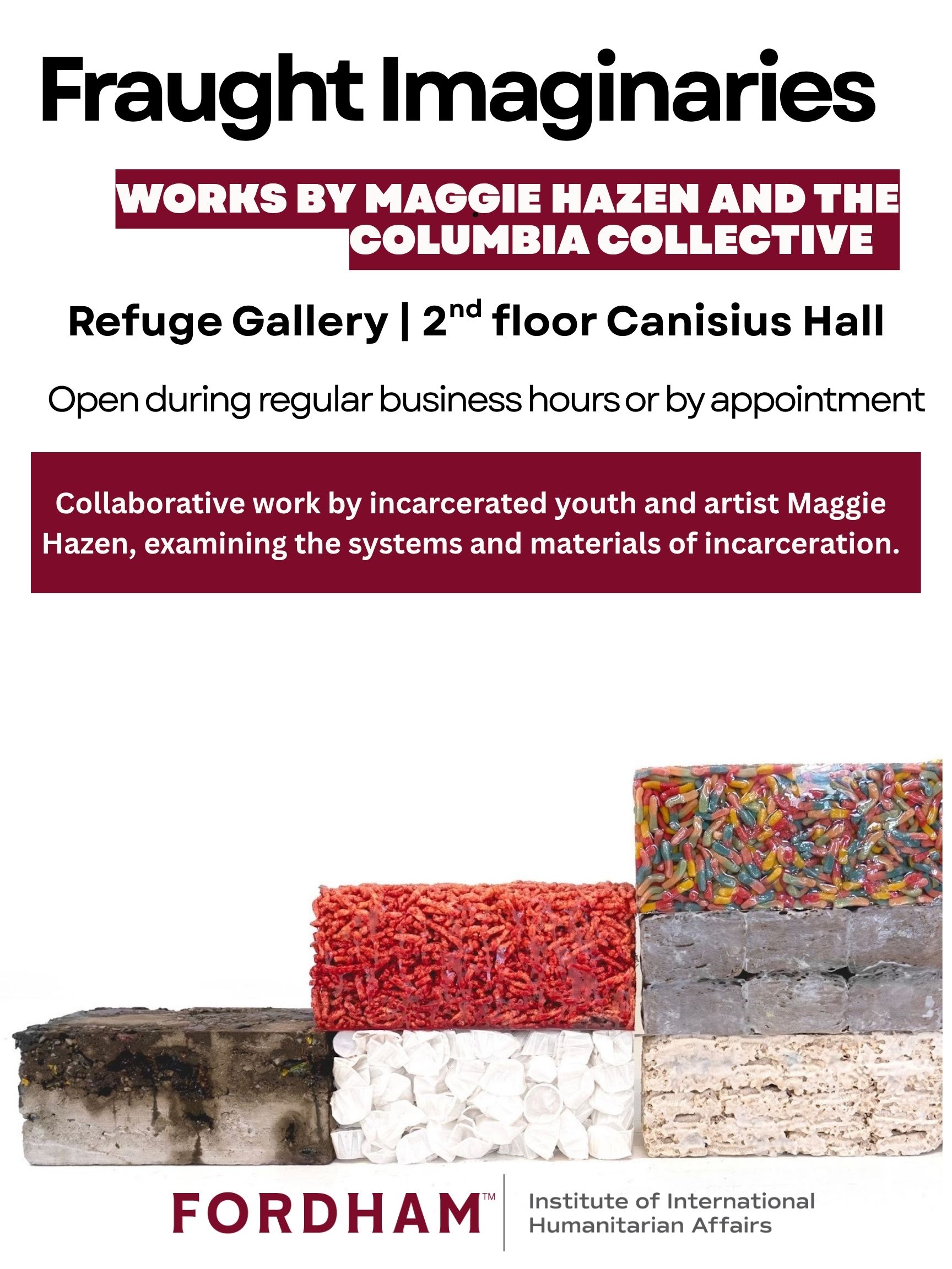 The Refuge Gallery serves as a venue for exhibitions of artistic work relating to humanitarian and social justice issues. Using art as a means to illuminate, educate and provoke, the Refuge Gallery seeks to bring the Fordham community closer to the injustices experienced by our fellow global citizens.