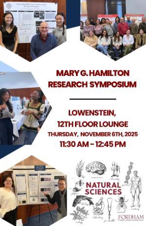 Each year, the Department of Natural Sciences at Fordham College at Lincoln Center highlights the outstanding accomplishments of our undergraduate students through this symposium, where our majors present the results of their research.